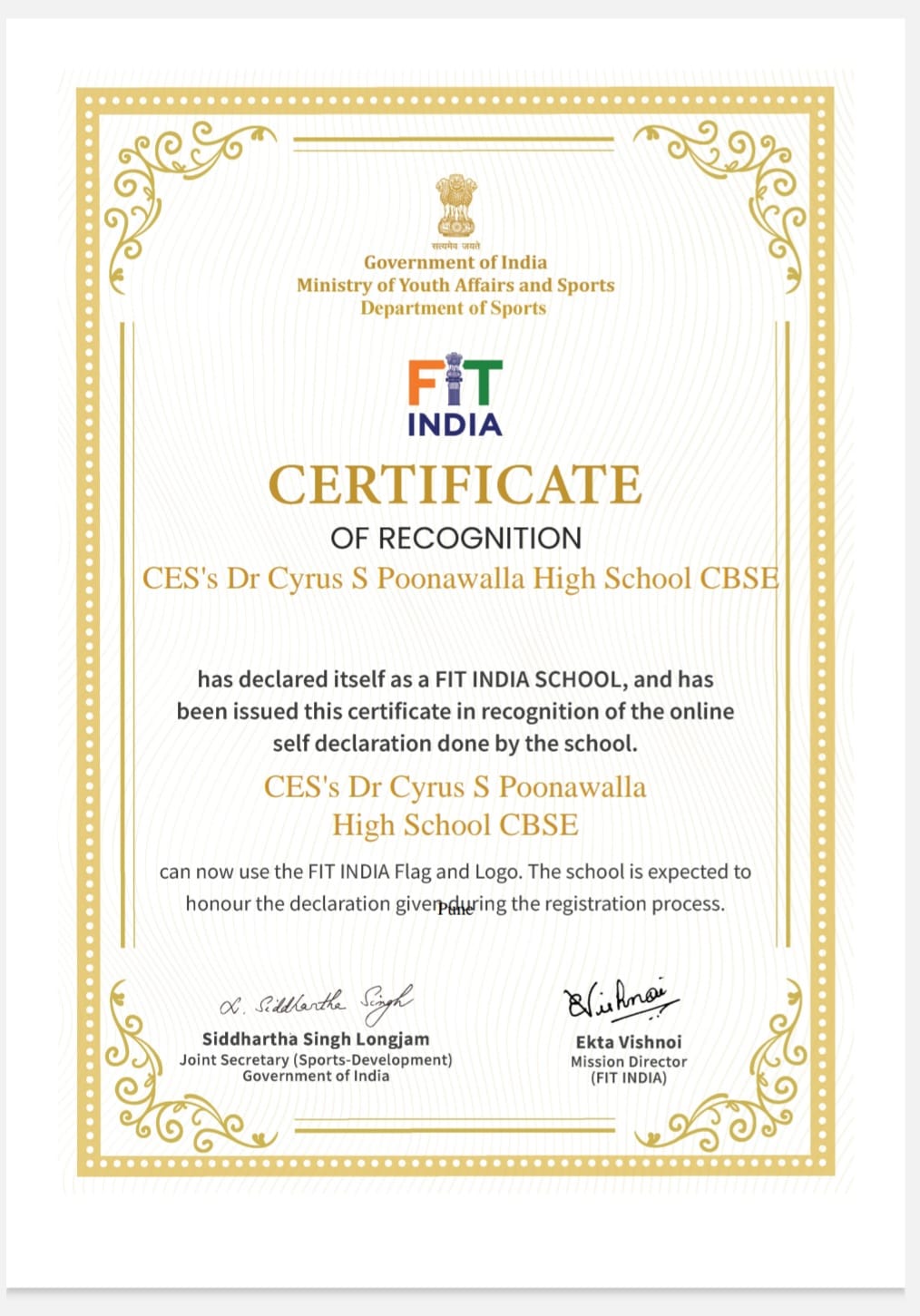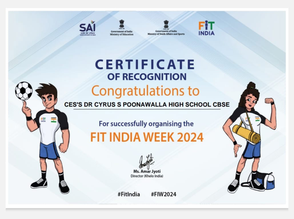 Certificate Of Recognition for successfully organising the FIT INDIA WEEK 2024