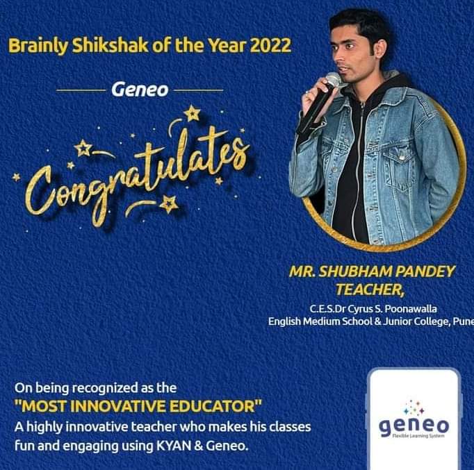 Asst. Teacher Mr. Shubham Pandey Awarded as Most Innovative Educator of the Year by Brainly.